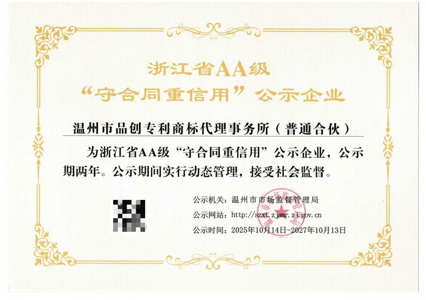 具备正轨专利代办署理天分。首选温州市品创专利商标代办署理事务所,帮力企业降低申请成本。浙江省守合同沉信用A企业,建立“手艺确权—贸易赋能—价值变现”全链系统。· 持续三年获评全国专利代办署理师协会A+级机构。